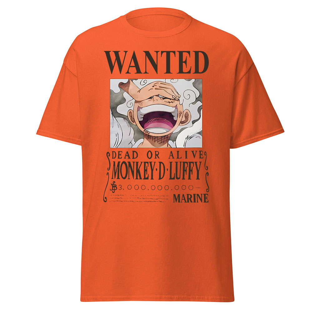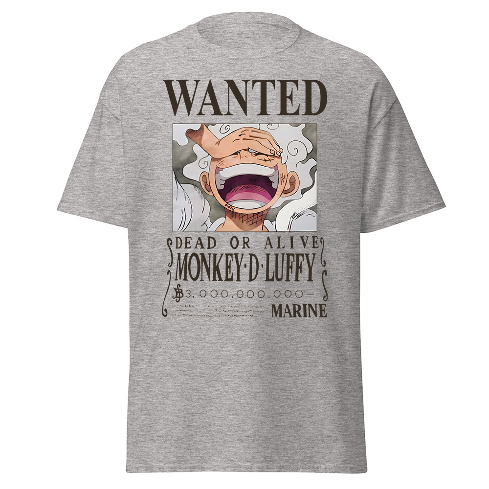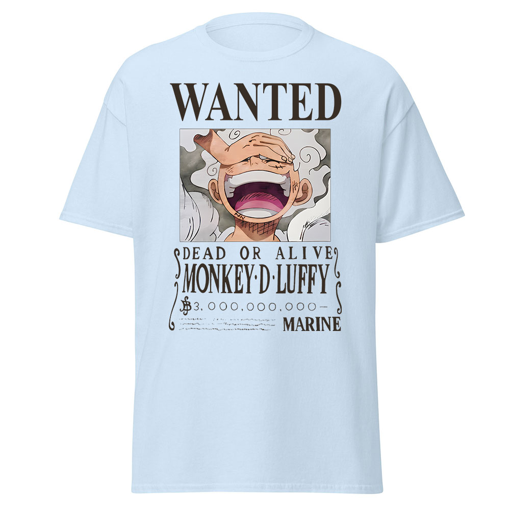 Celebrate the rise of a new emperor with this Monkey D. Luffy Wanted Poster T Shirt, inspired by Luffy’s legendary Gear 5 awakening. Featuring the iconic “Dead or Alive” layout and his massive 3 billion bounty, this design perfectly captures Luffy’s free spirit, laughter, and unstoppable will.