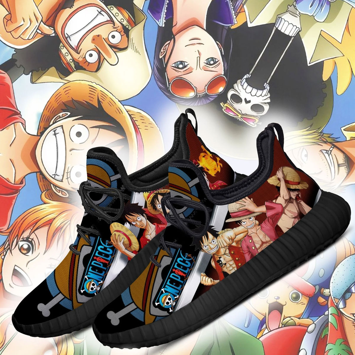 One Piece Reze Shoes featuring Luffy and Straw Hat crew. Lightweight mesh sneaker with bold anime graphics—perfect daily wear from One Piece Universe Store.
