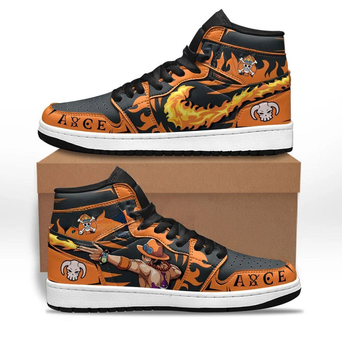 One Piece Shoes Ace Flame Pirate Black Orange High Top