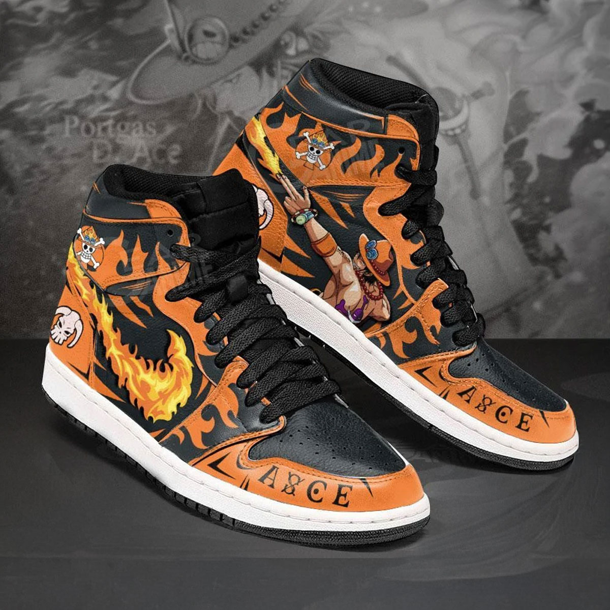 One Piece Shoes Ace Flame Pirate Black Orange High Top