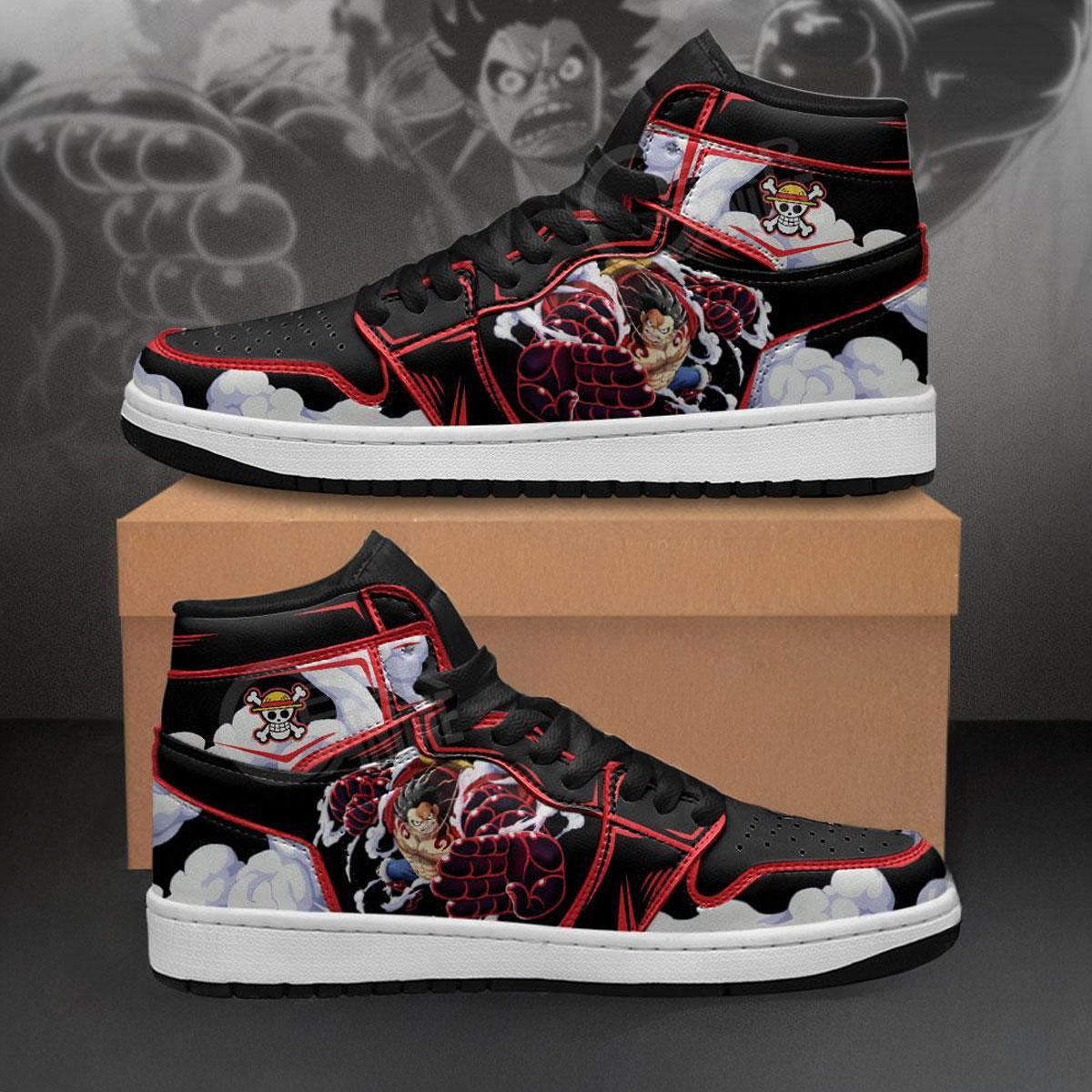 Inspired by Luffy’s Gear 4 transformation, this design captures the raw power and intensity of Haki-infused combat. With striking red outlines and cloud effects, the sneakers deliver a strong, battle-ready anime vibe—crafted by One Piece Verse.