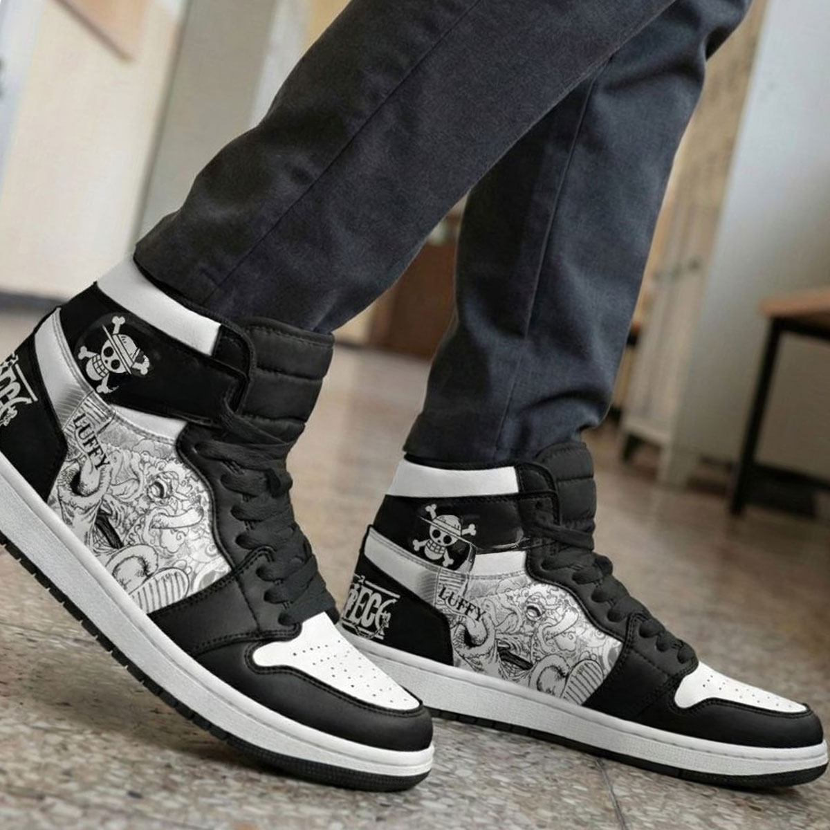 Bring a fresh Gear 5 vibe to your outfit with these Luffy Gear 5 Manga High-Top Sneakers. Featuring sketch-style artwork and iconic Straw Hat symbols, this pair blends classic manga aesthetics with modern streetwear—signature look from One Piece Verse.