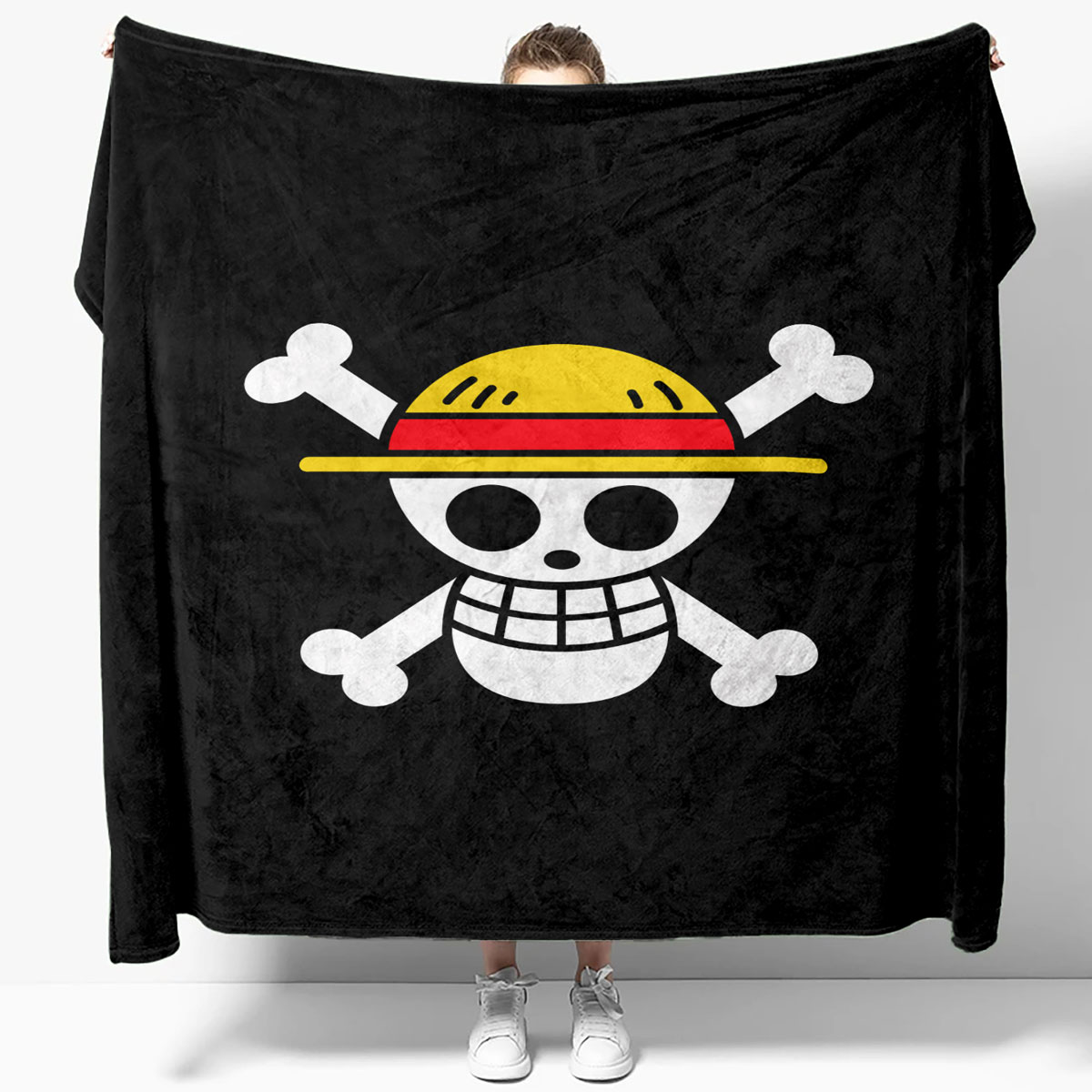 - Style: Minimal anime blanket with iconic pirate symbol