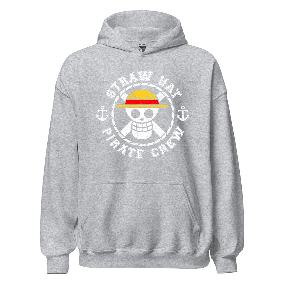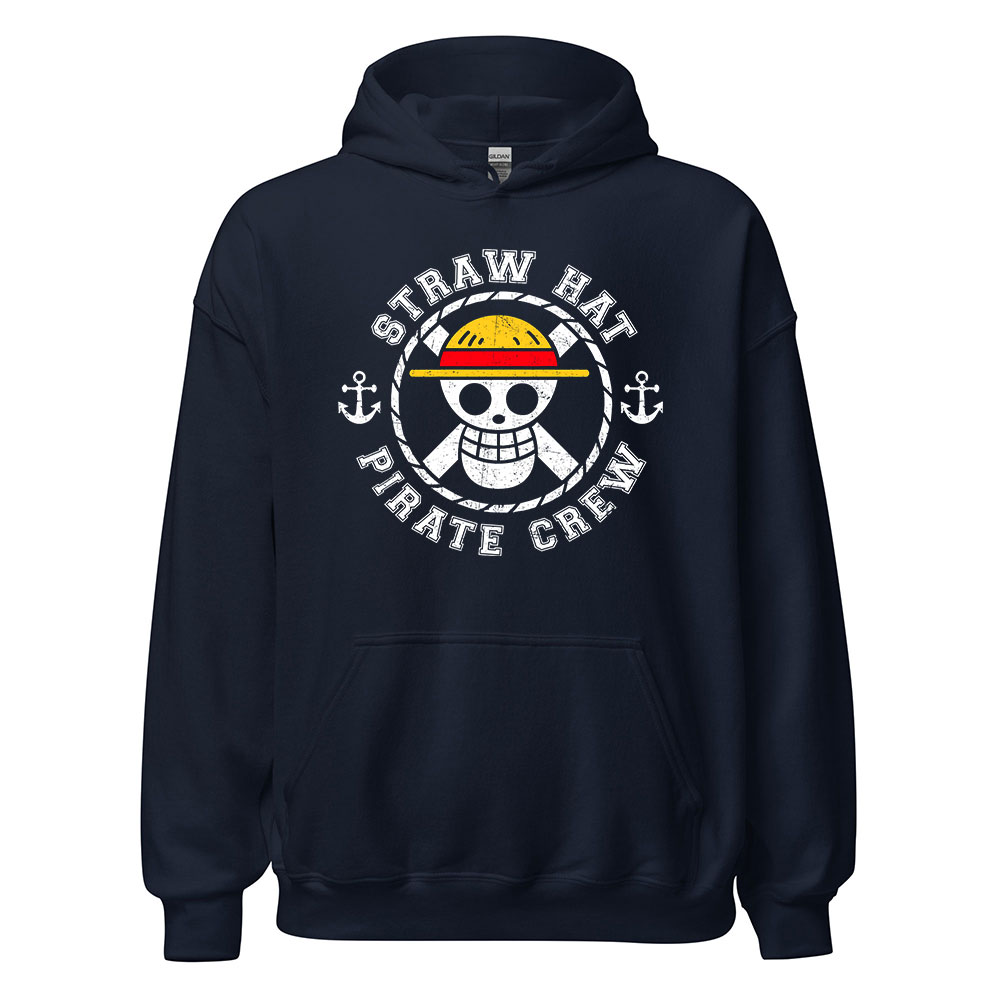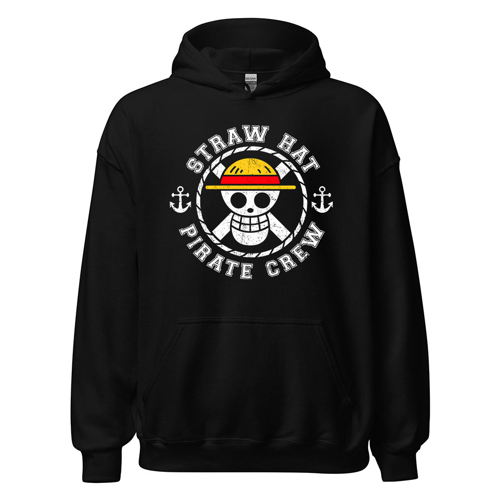 - Design: Straw Hat Pirate Crew logo with vintage distressed style