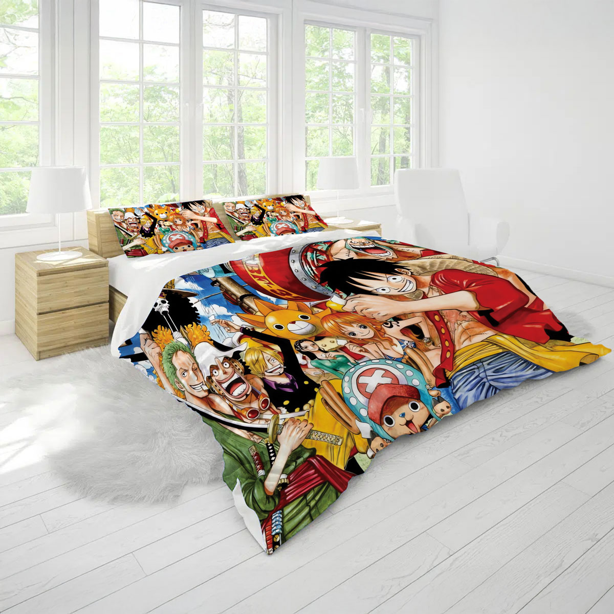 • Theme: Straw Hat Crew Celebration Scene – One Piece Bed Set