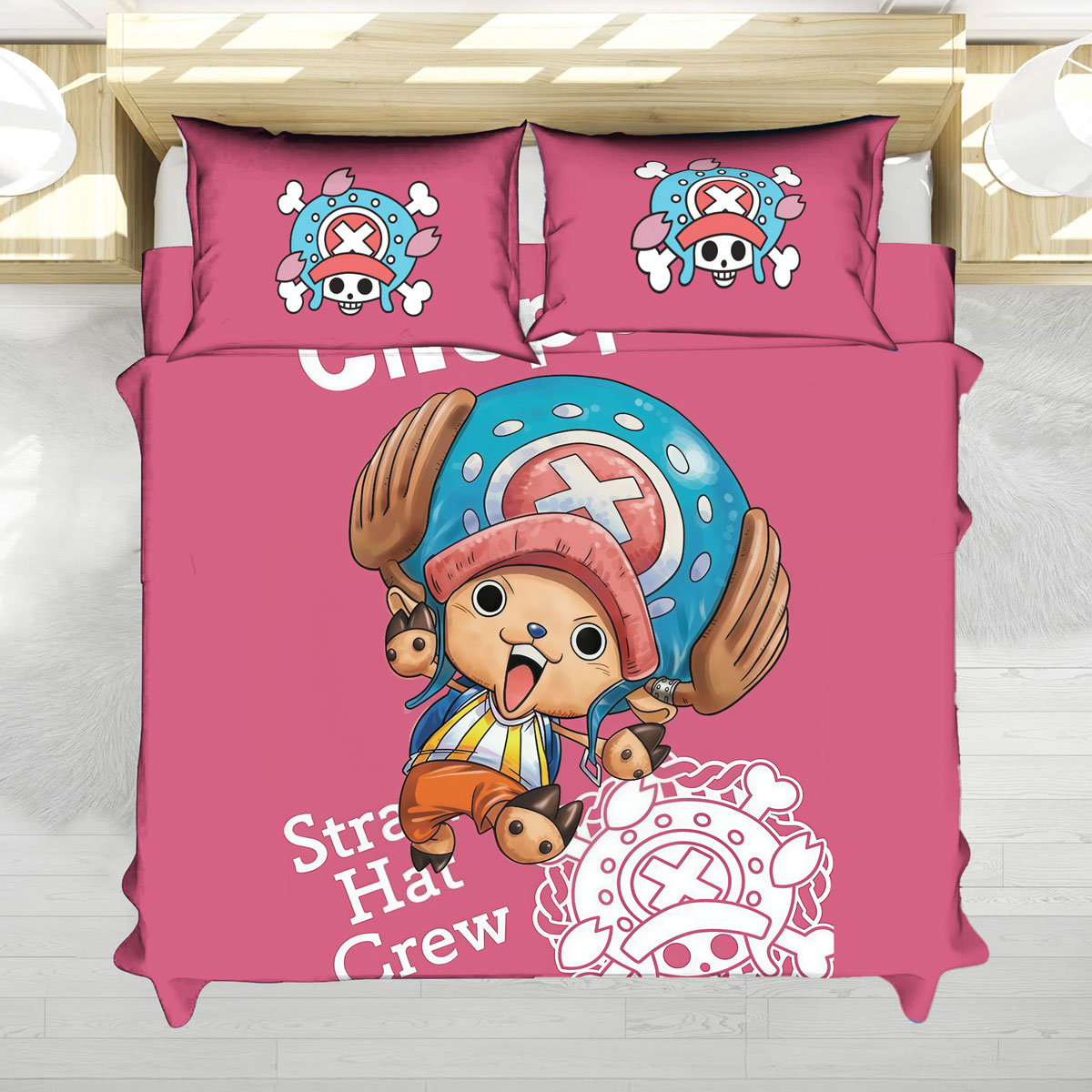 A cute and cheerful design featuring Tony Tony Chopper in a playful style. Made from soft microfiber with lasting print quality, this set from One Piece Verse brings a warm, fun anime touch to your space.